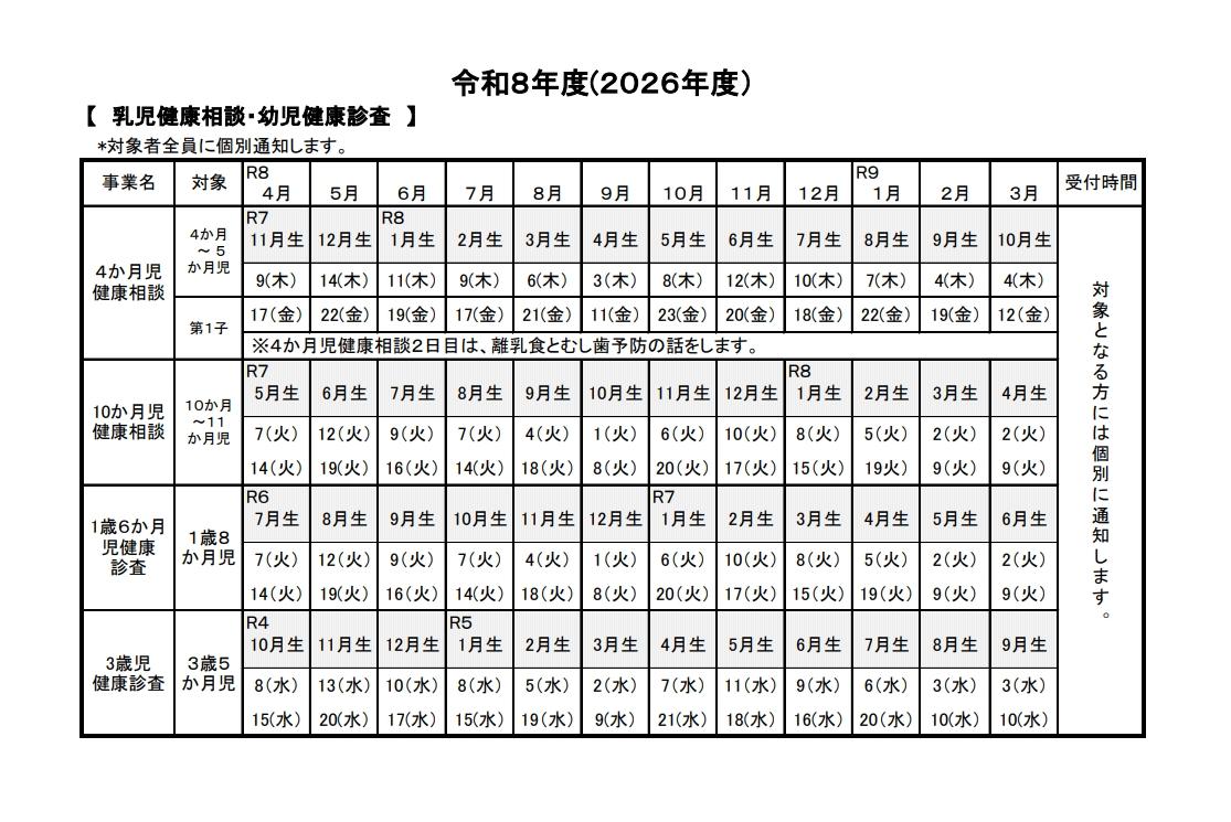 ※対象の方には、対象月の1か月前までに個別通知を差し上げます。日程の詳細は下記日程表をご覧ください。